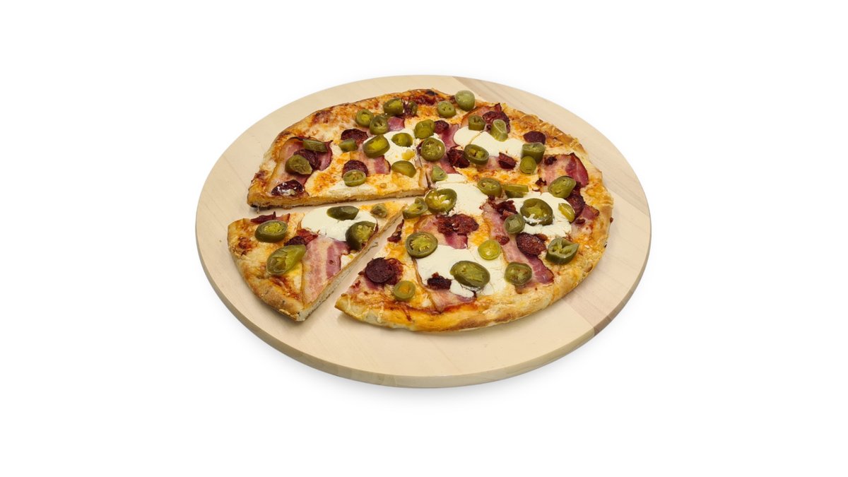 Sajtkrém, csirkemell csíkok, szalonna, gomba, jalapeno paprika, sajt