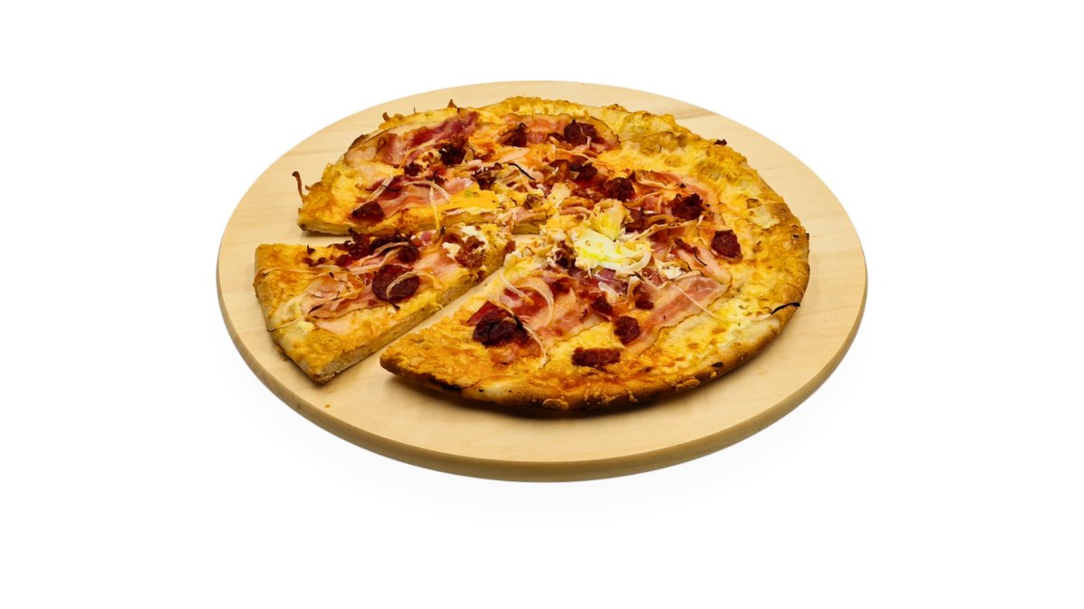 Tejfölös alap, kolbász, szalonna, sonka, sajt, hagyma, főtt tojás