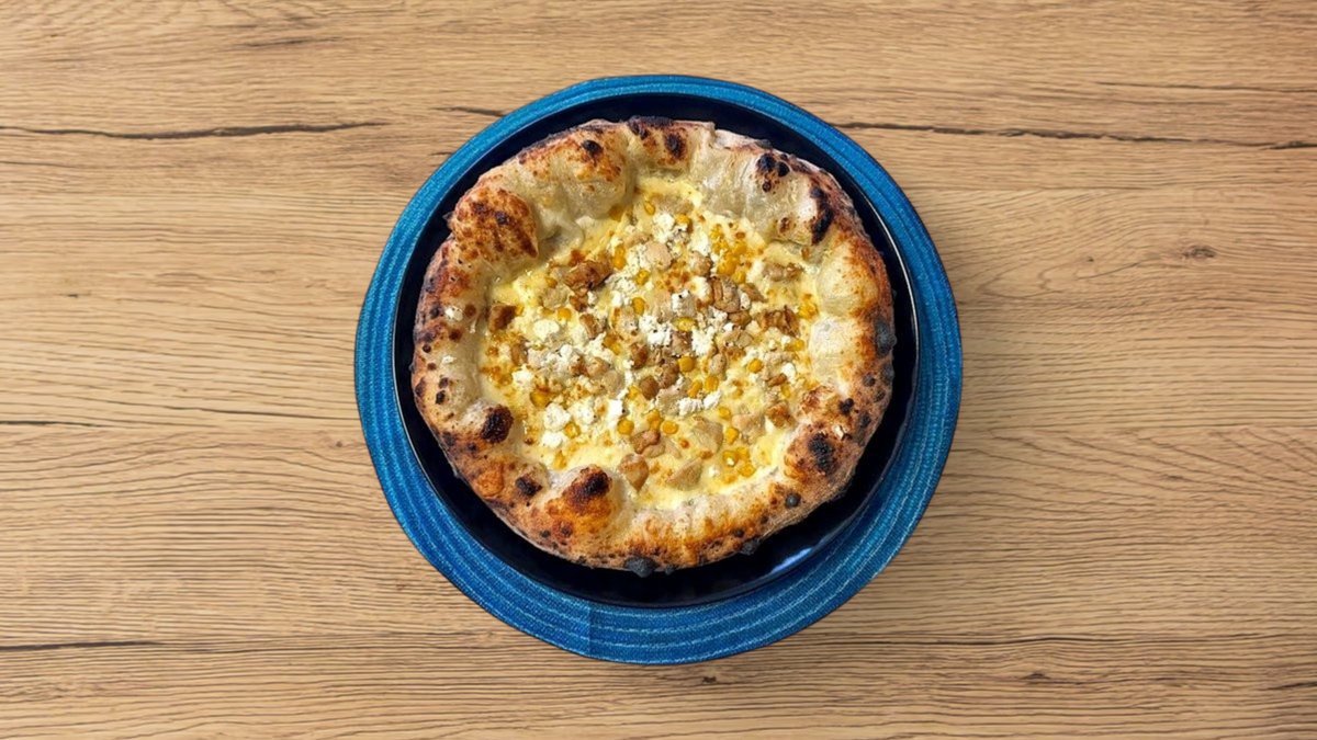 Tejfölös-majonézes alap, csirkemell kukorica, feta sajt, mozzarella