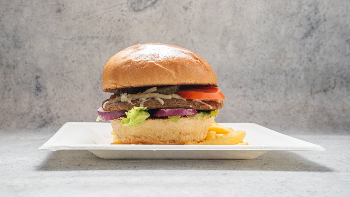 Retro burger (csirkehúsból) + hasáb