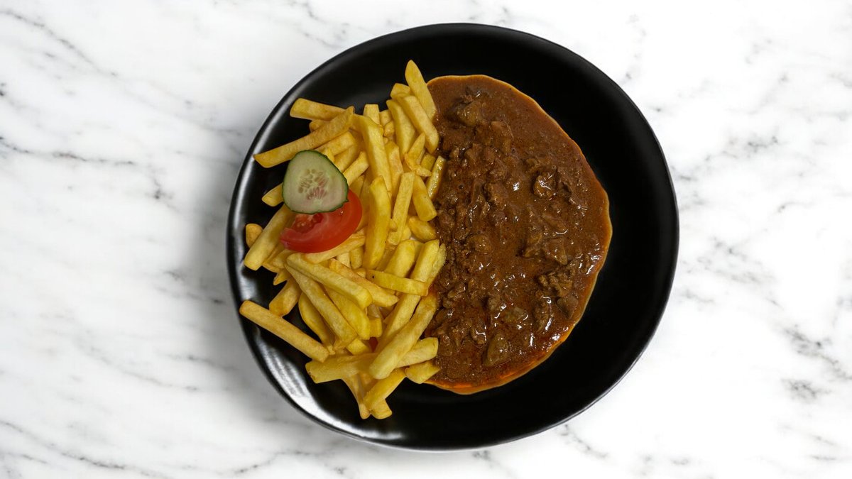Giroszhús,joghurtszósz,sültburgonya,saláta,káposzta,hagyma,paradicsom,uborka