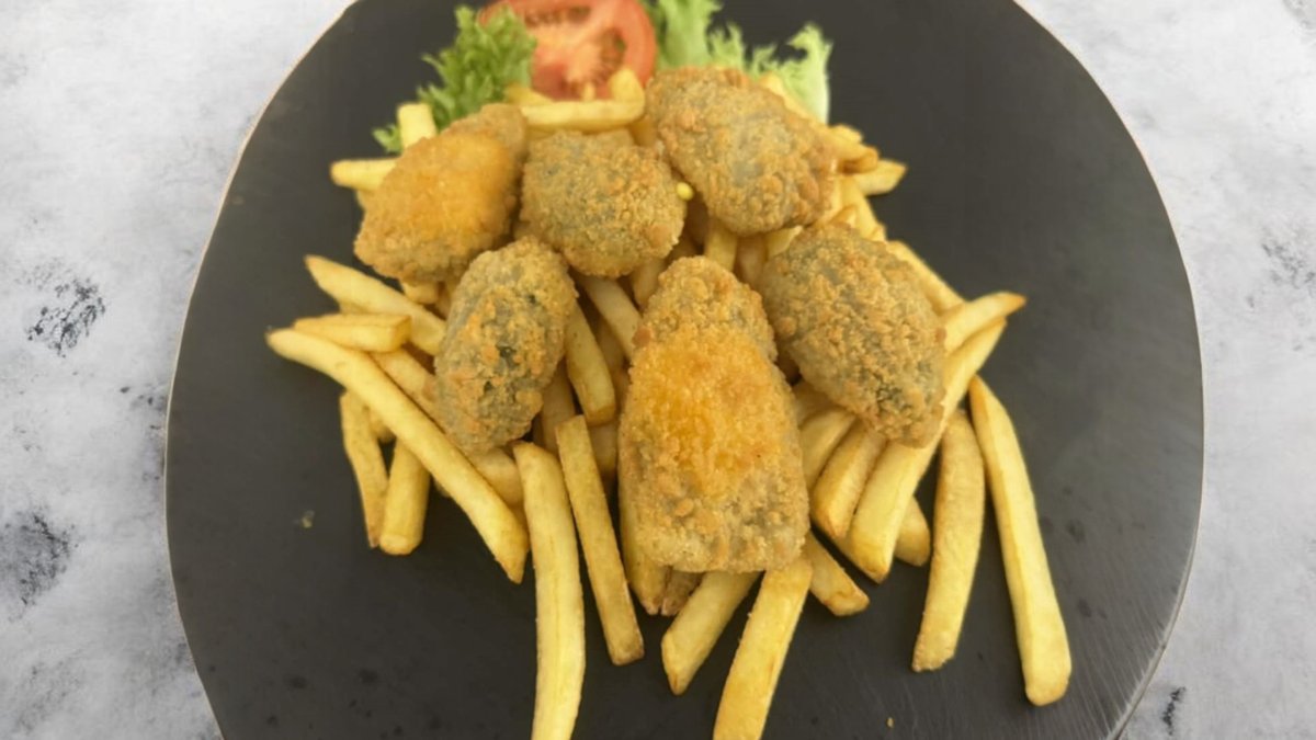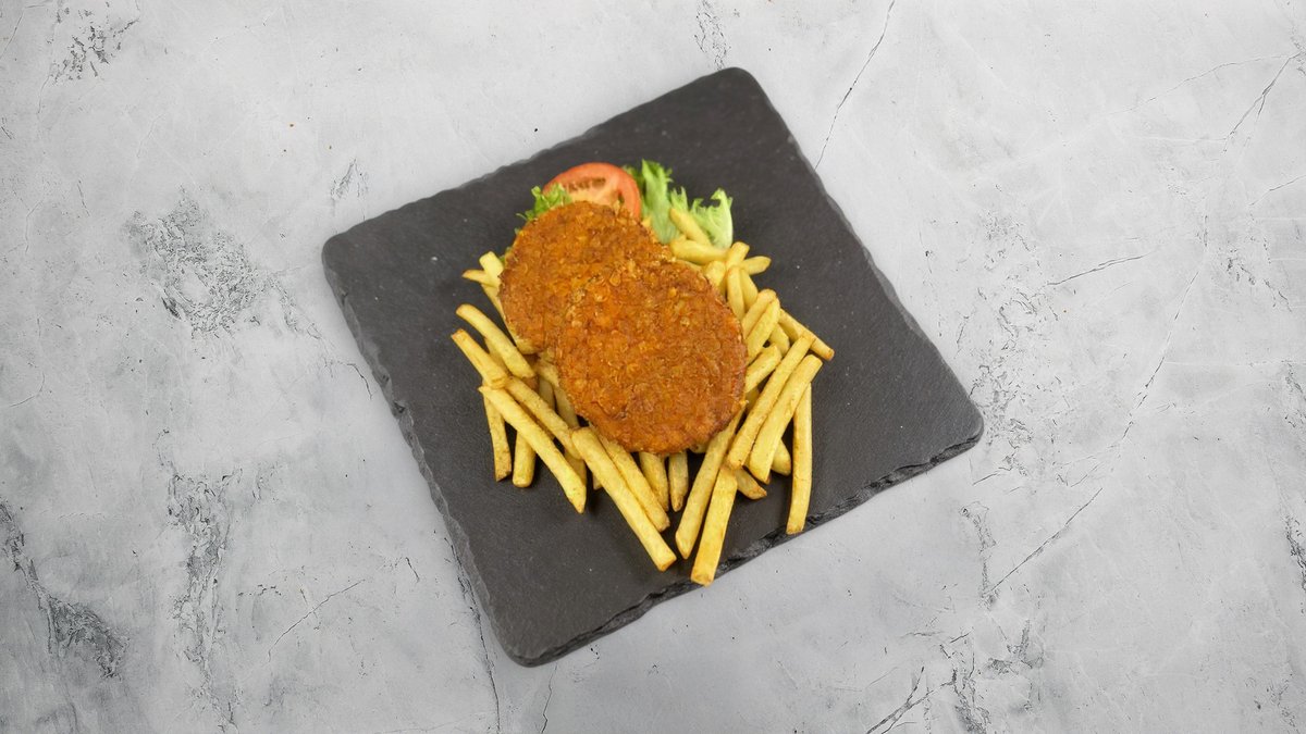 Panírozott sajtszószos halfilé hasábburgonyával, tartárral - 2 db 110grammos hafilé