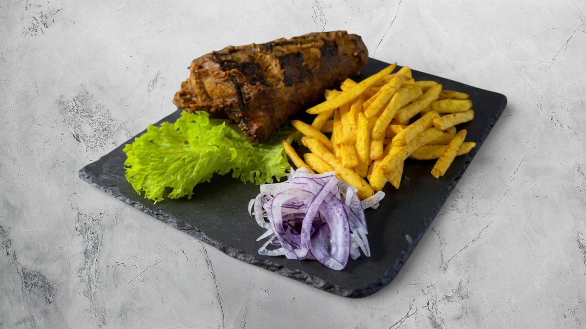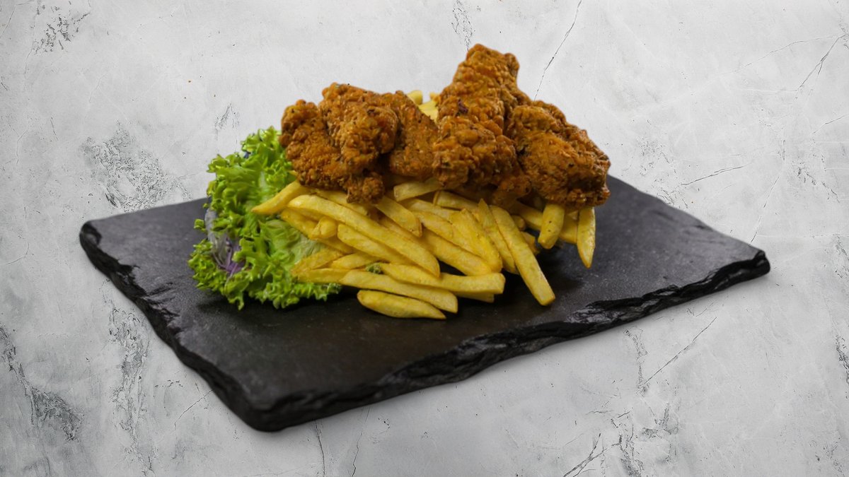 Ropogós bundában sült csirkemell csíkok (6db) hasábburgonyával