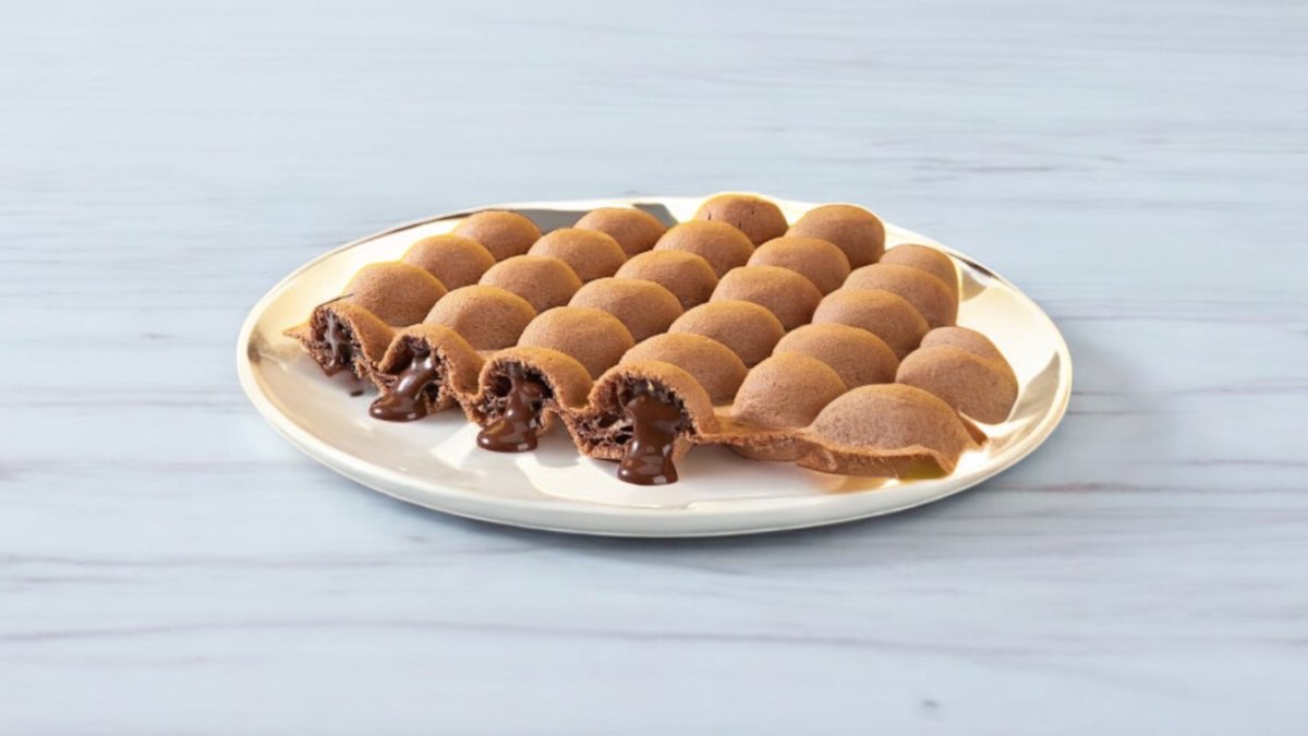 Original HK waffle mixed with cocoa powder, 100% hand made and fresh.