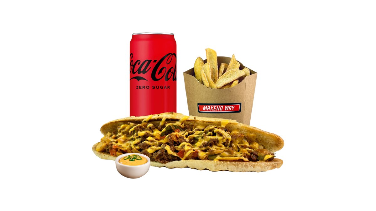 100% marhahús baguetten, pirított zöldségekkel (hagyma, kaliforniai paprika) és cheddar sajtöntettel. Válassz mellé egy üdítőt és hasábburgonyát mártogatós szósszal.