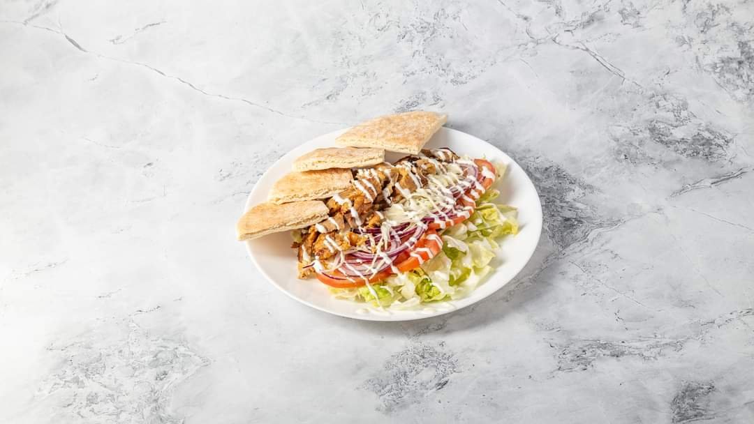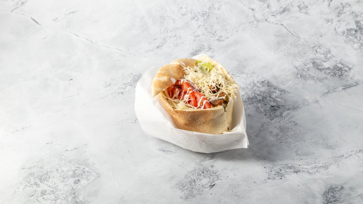 Pita, Gyroshús, Jégsaláta, Paradicsom, Káposzta, Lilahagyma, Gyrosszósz