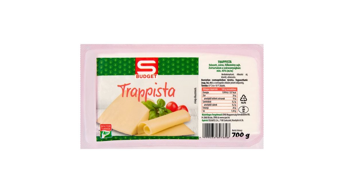 S-Budget Tilsiter zsíros, félkemény, darabolt sajt pasztőrözött tejből 350 g