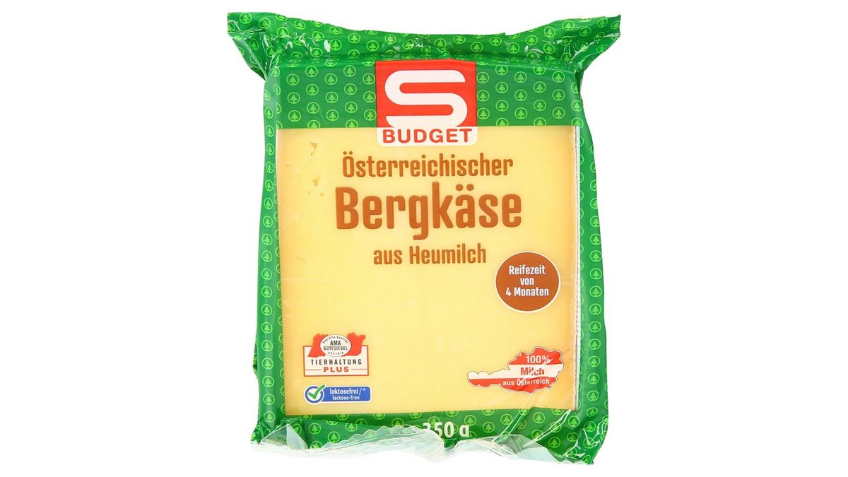 S-Budget Bergkäse zsíros, kemény, osztrák sajt silómentes tejből 350 g