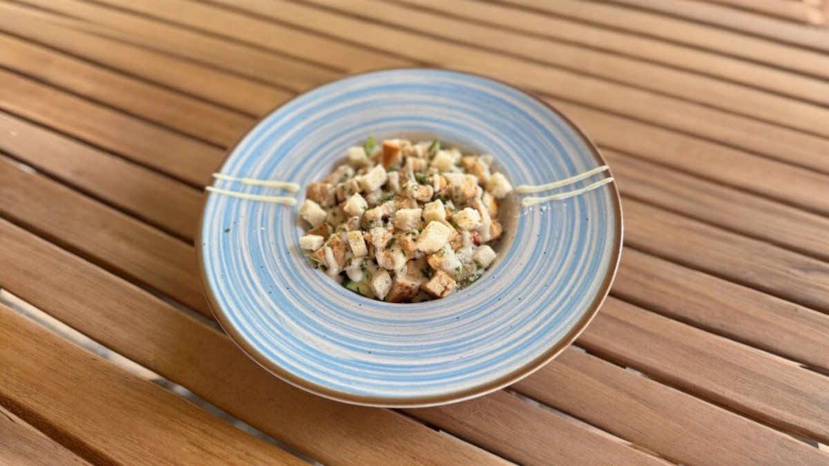 Könnyed rómia saláta krutonnal, citromlé csirkemell