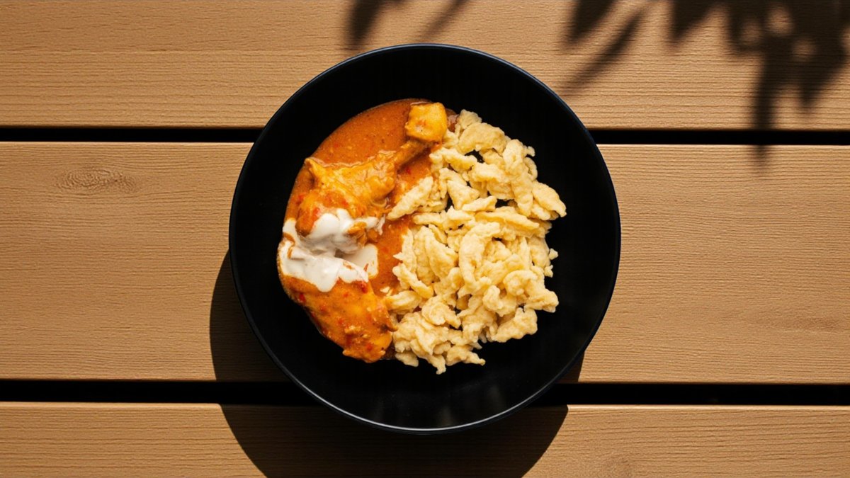 Klasszikus magyar csirkepaprikás házi galuskával.
