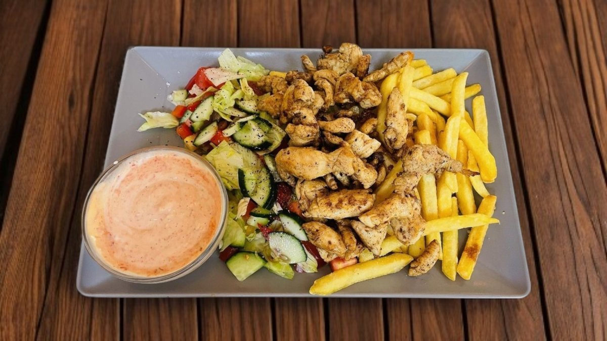 Gyros tál hasábburgonyával