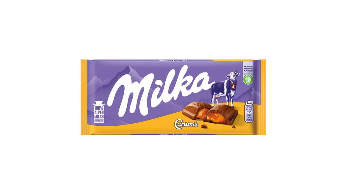 Milka alpesi tej felhasználásával készült tejcsokoládé karamellás töltelékkel 100 g