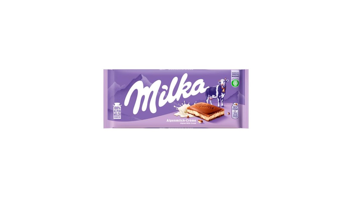 Milka alpesi tej felhasználásával készült tejcsokoládé tejes krémtöltelékkel 100 g