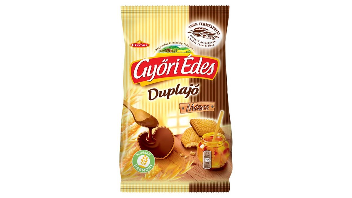 Győri Édes Duplajó kakaós bevonómasszával talpán mártott, omlós, mézes keksz 150 g