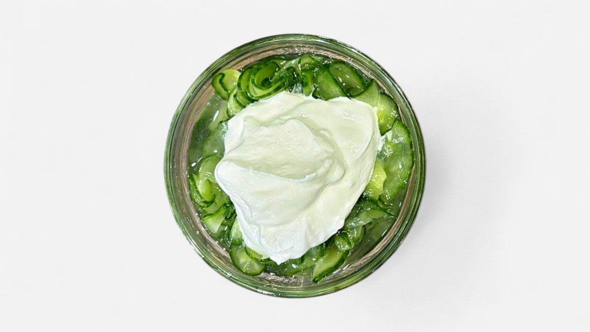 juhtúrós galuskával, kovászolt uborkával és házi kenyérrel (* glutén, laktóz, tojás, ecet)