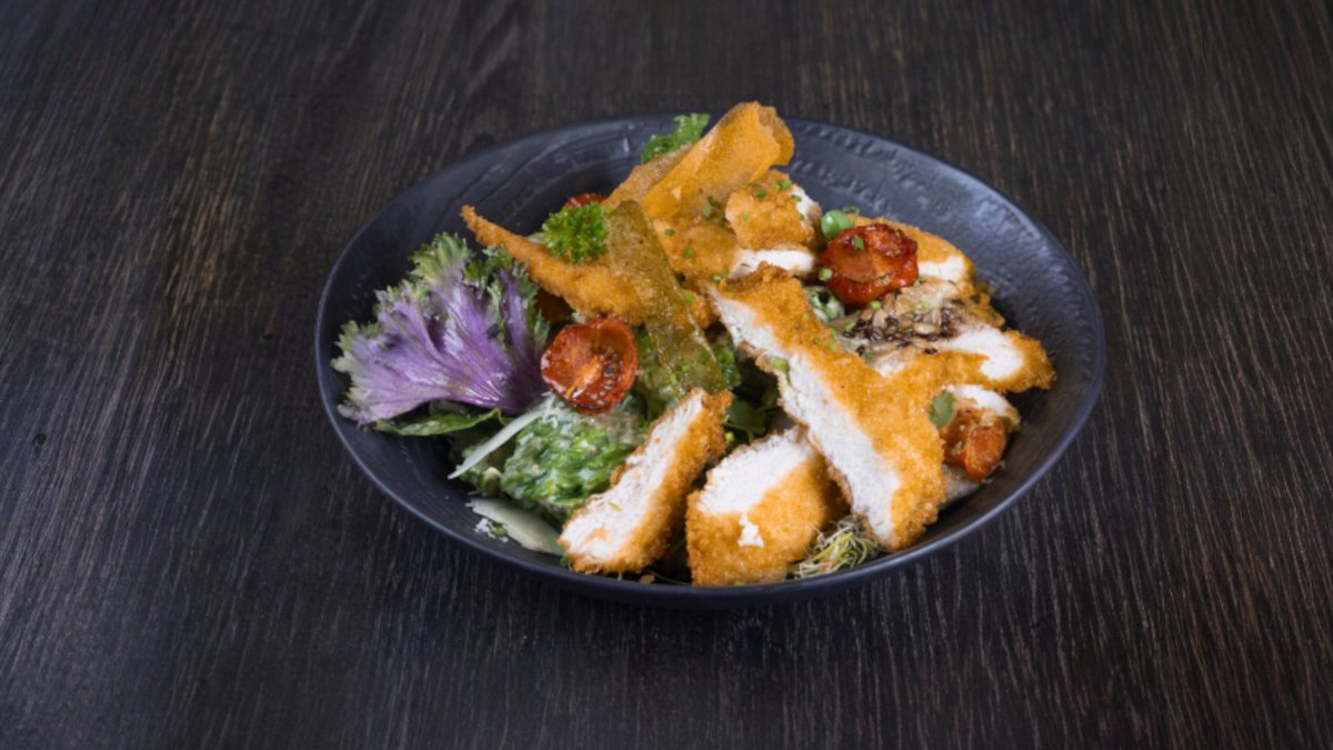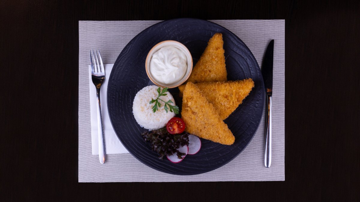 Mediterrán jércemell, roston sült csirkemell filé, rántott trappista sajt, tempurált zöldségek, illatos jázminrizs, tartármártás