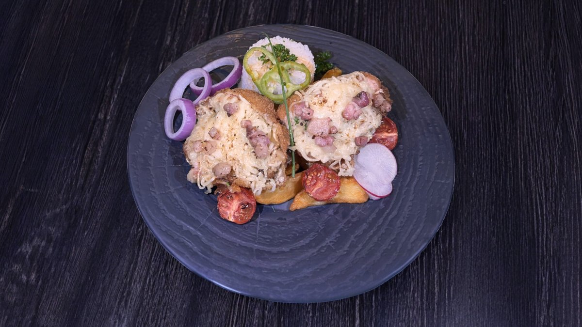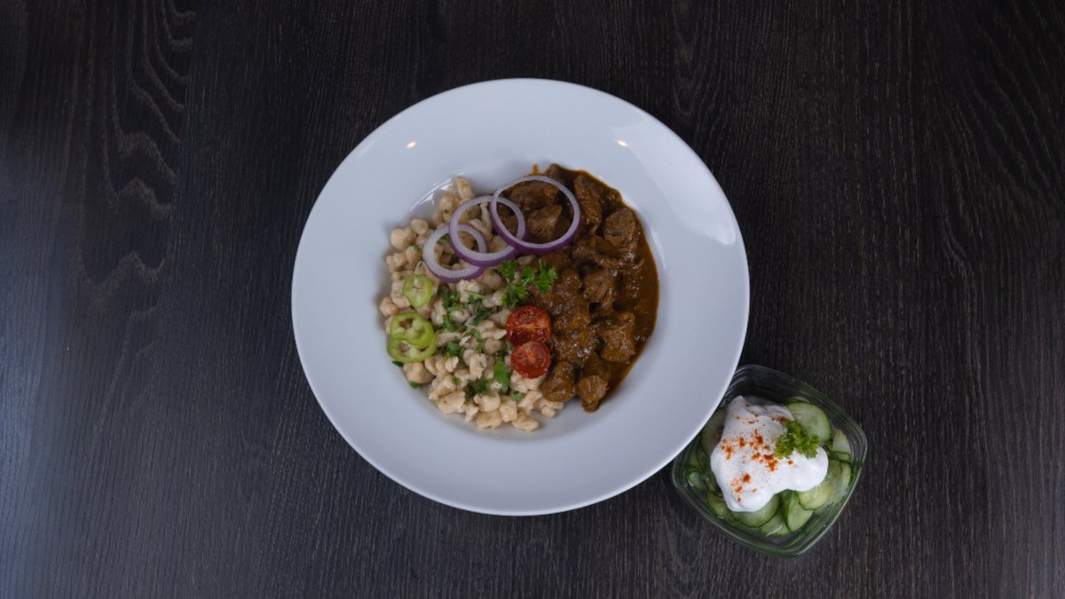 Hagymás rostélyos, cordon bleu, ínyenc pásztor karaj, vegyes köret, savanyúság
