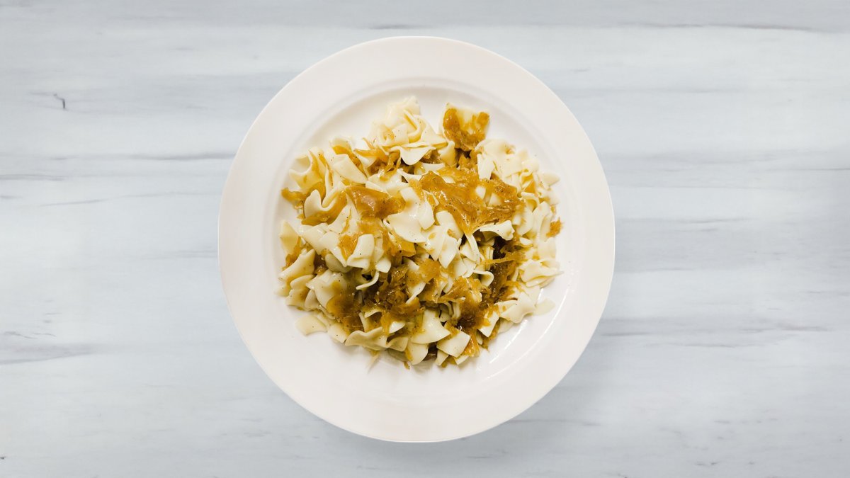 Túrós csusza tepertővel