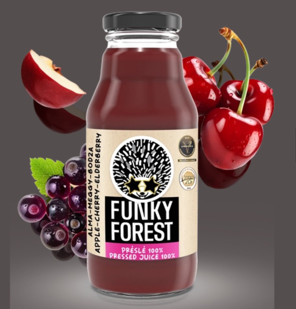 100%-os préslé, 330 ml kiszerelés Alapanyagok: alma 60% meggy 30% bodza 10%