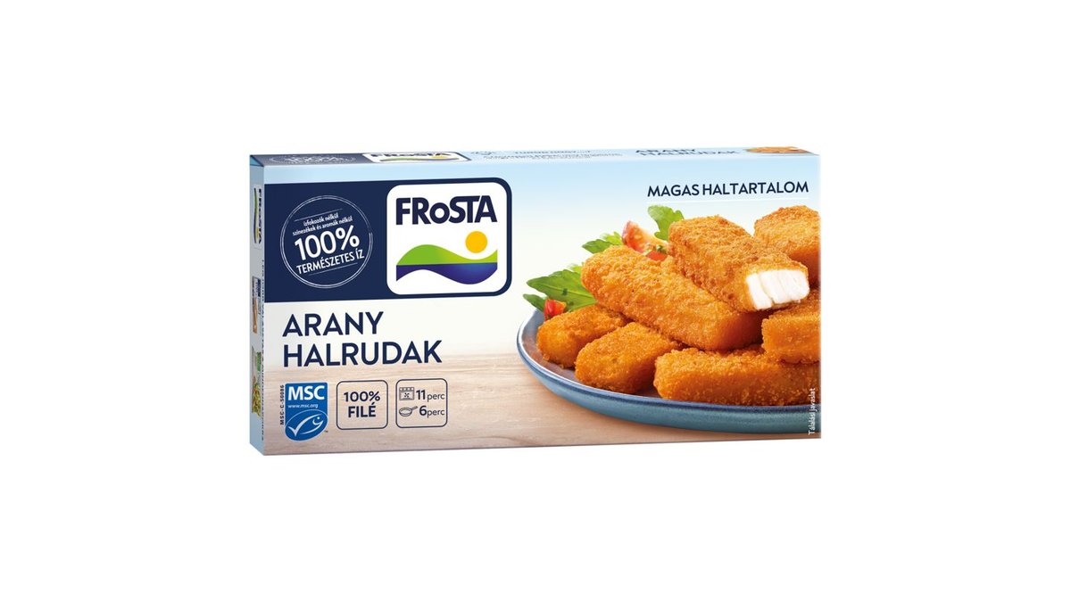 FRoSTA gyorsfagyasztott elősütött halrudak halfiléből aranyló ropogós panírban 15 db 450 g