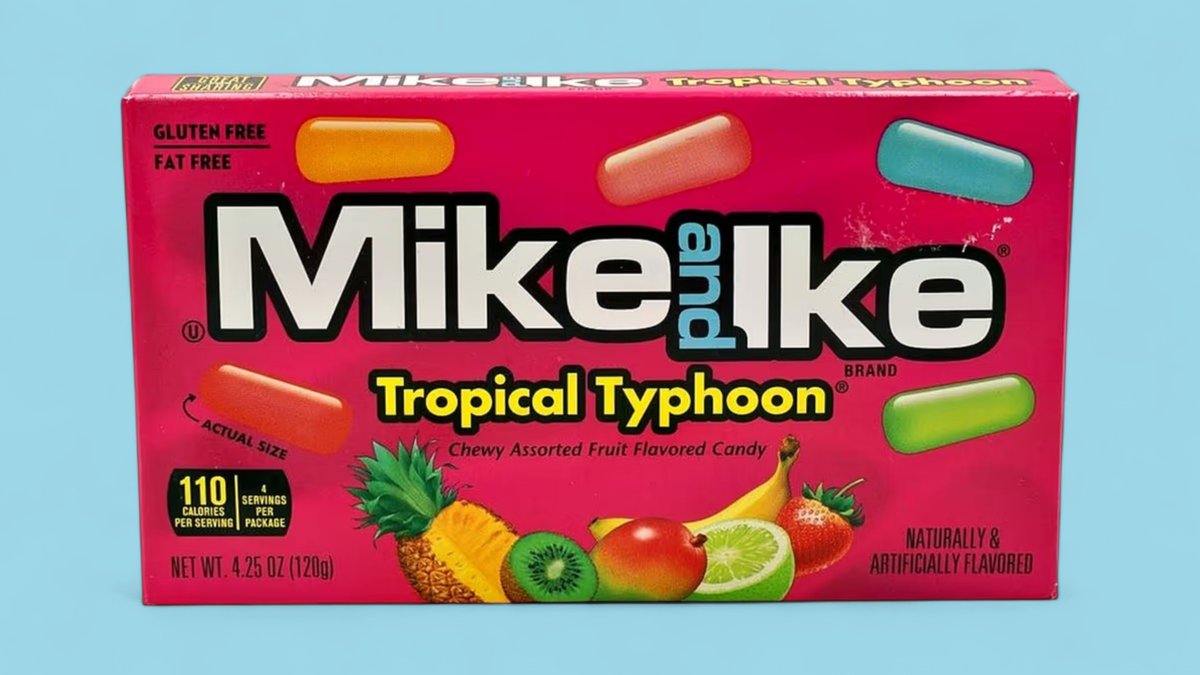 Mike and Ike Tropical Typhoon – Trópusi ízek vihara a szádba! 🌴💥 Ez a rágós cukorka öt izgalmas gyümölcsízzel robban be: édes Strawberry-Banana, fűszeres Mango, friss Kiwi-Banana, élénk Caribbean Punch és paradicsomi Paradise Punch. Minden falat egy mini nyaralás a szádban, ami egyszerre édes, friss és vibráló. Tökéletes, ha valami trópusi, játékos és izgalmas nassolnivalóra vágysz! 🍉🍍🥭