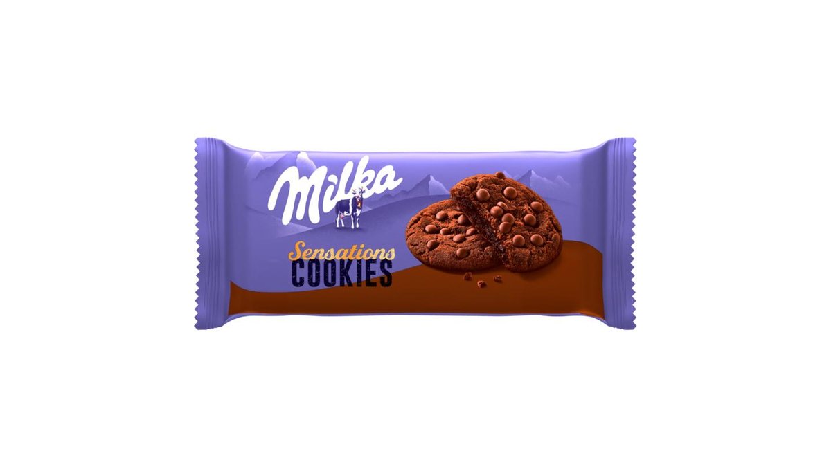 Milka Cookies Sensations keksz alpesi tejcsokoládé darabokkal és tejcsokoládés töltelékkel 156 g