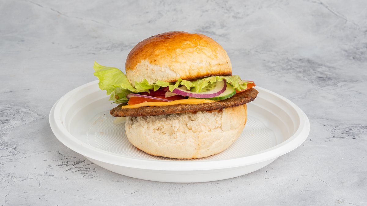 A klasszikus hamburger egy szelet olvadt sajttal megkoronázva. Szaftos marhahúspogácsa, friss zöldségek és puha buci, ketchuppal és mustárral – egy kis plusz élvezet minden falatban.