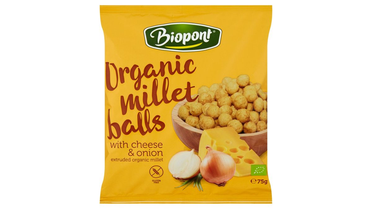 Biopont bio gluténmentes kölesgolyó, sajtos-hagymás ízesítésű 75 g