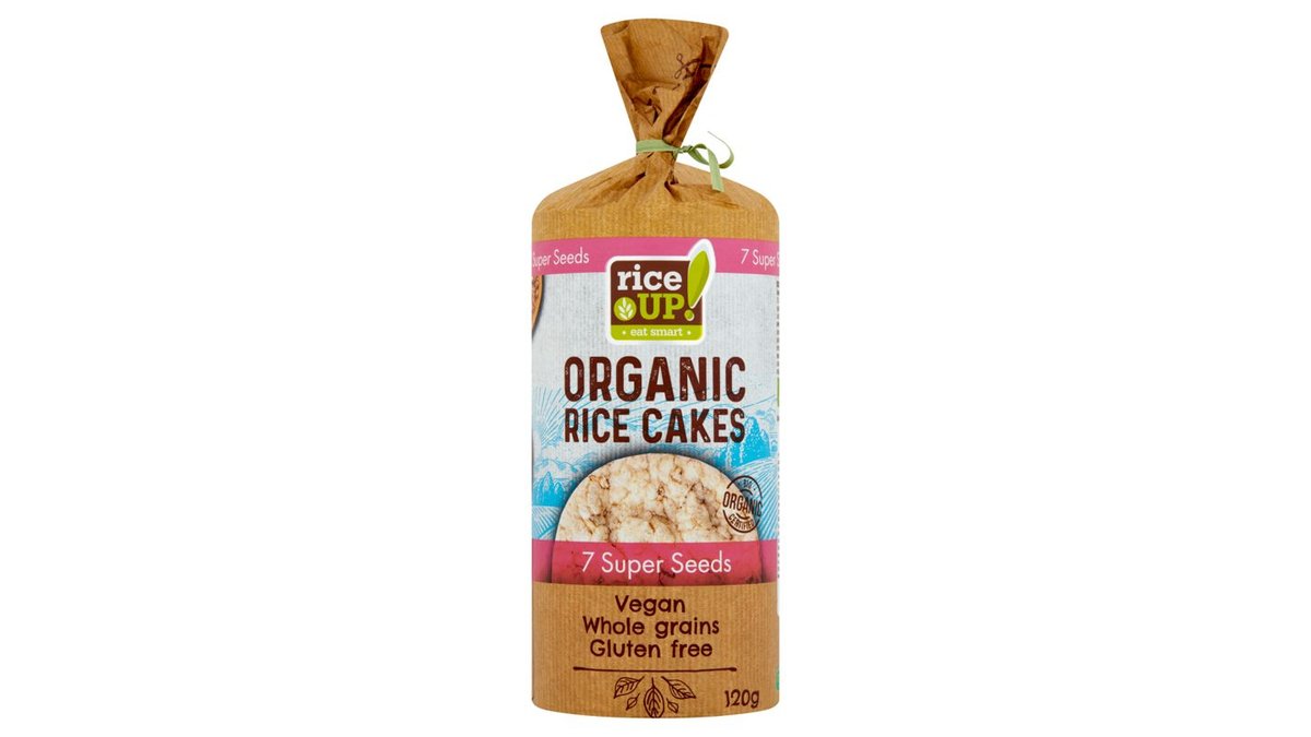 RiceUp! Eat Smart BIO puffasztott teljes kiőrlésű barna rizs szelet szupermagvakkal 120 g