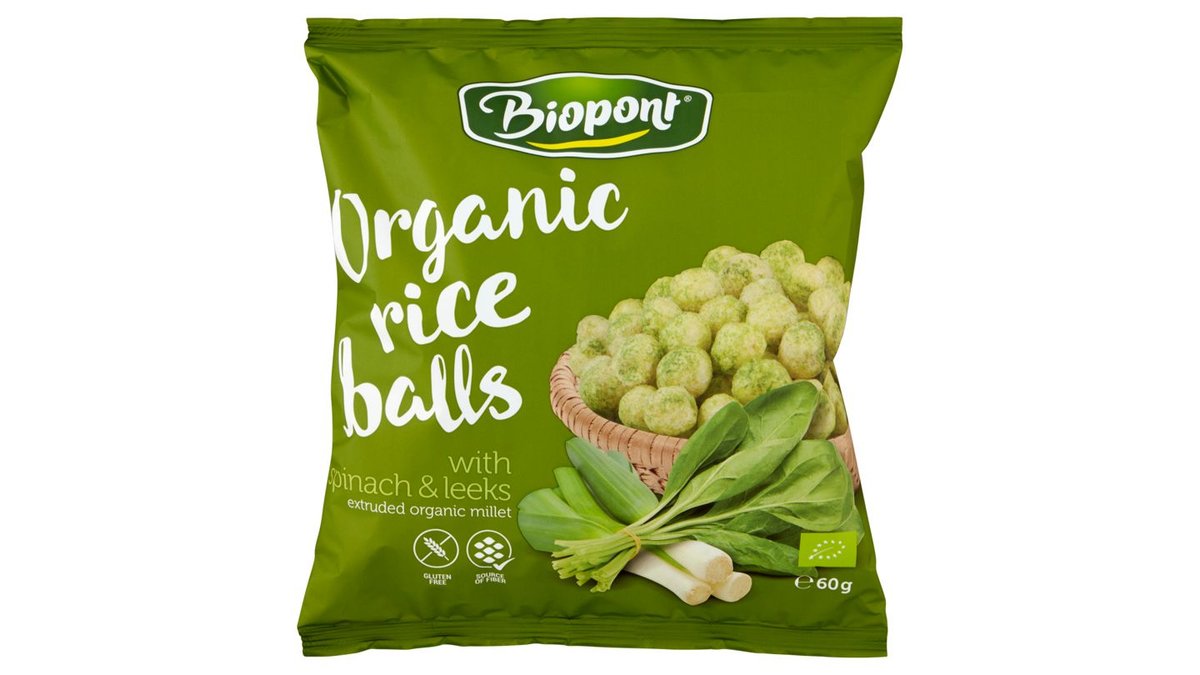 Biopont gluténmentes bio rizsgolyó spenóttal és póréhagymával 60 g