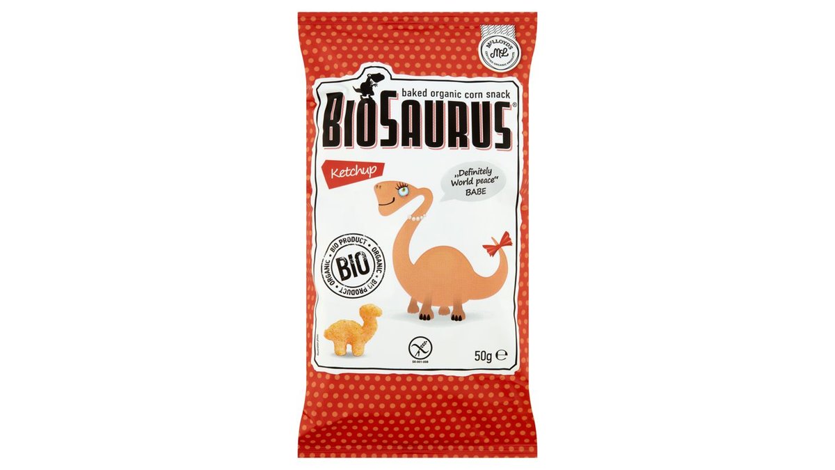 BioSaurus BIO ketchupos ízesítésű extrudált kukoricás snack 50 g