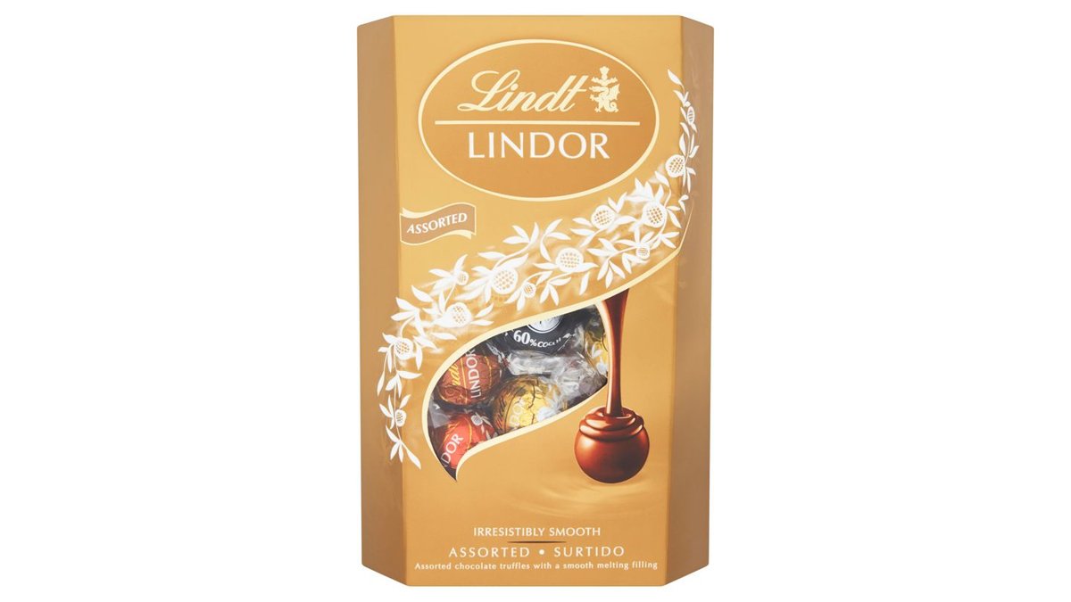 Lindt Lindor tejcsokoládé-tejcsokoládé mogyoródarabokkal-fehér- és keserű csokoládé praliné 337 g