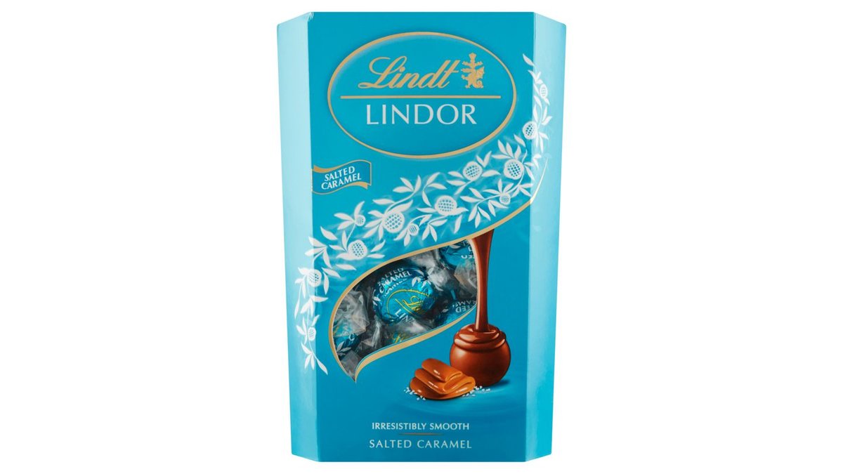 Lindt Lindor tejcsokoládé sókristályokkal és lágyan olvadó karamellás töltelékkel 337 g