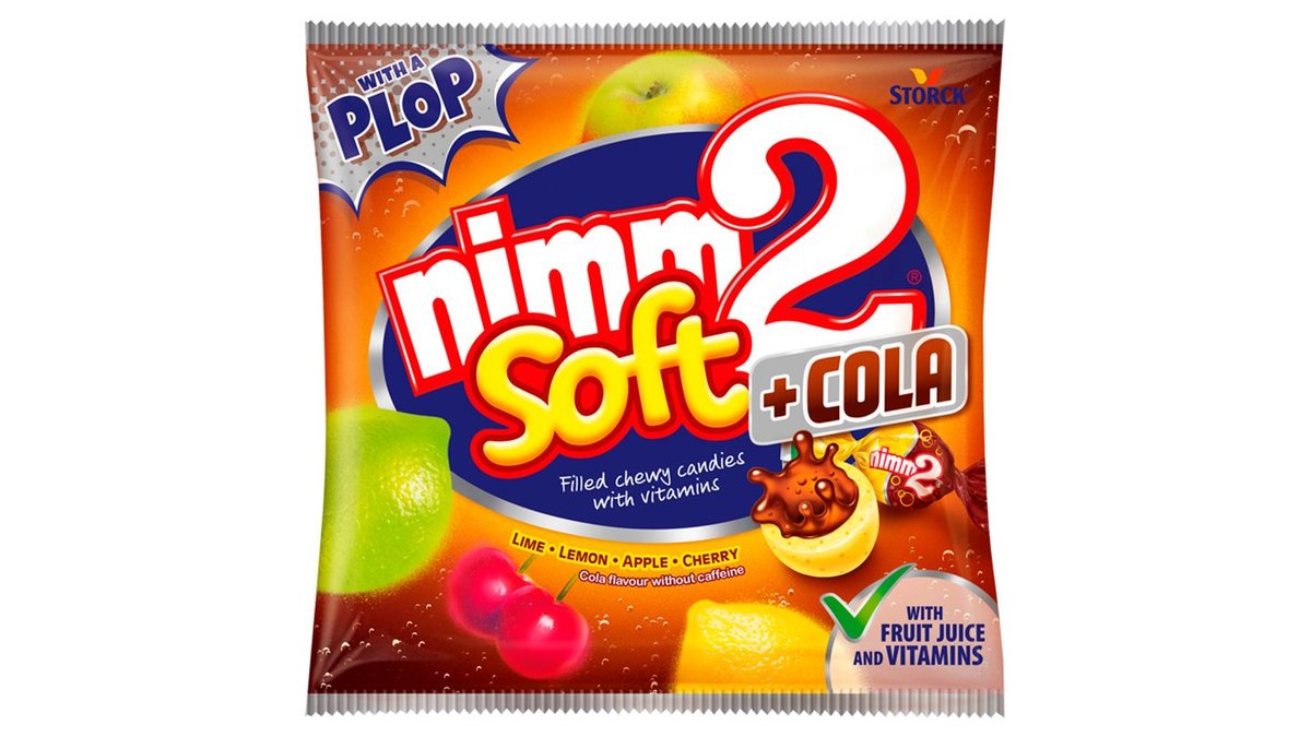 nimm2 Soft + Cola koffeinmentes gyümölcsös töltött cukorka vitaminokkal és kóla ízesítéssel 90 g