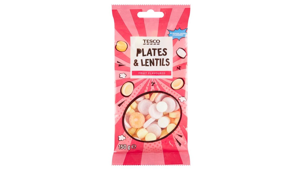 Tesco Plates & Lentils vegyes gyümölcsízű töltetlen keménycukorka 150 g