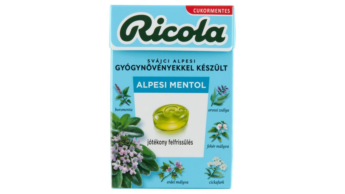 Ricola Alpesi Mentol cukormentes svájci gyógynövény cukorkák édesítőszerekkel 40 g