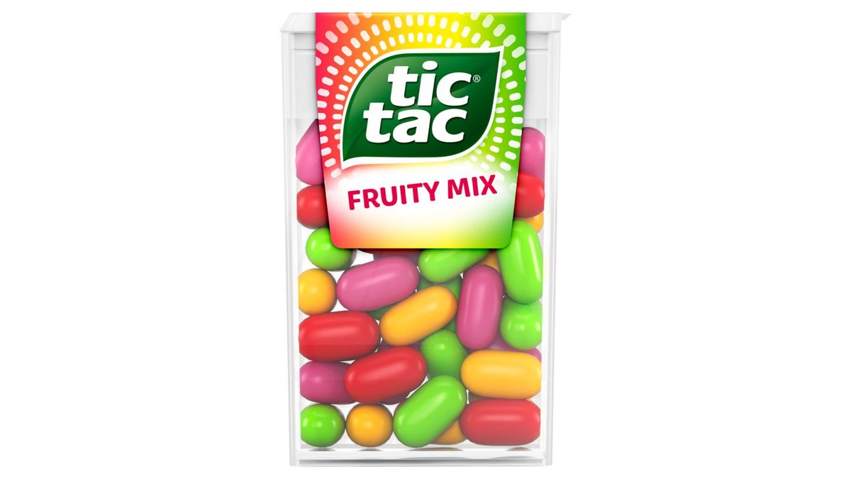 Tic Tac Fruity Mix cseresznye-, marakuja-, citrom-lime, és eper-mentol ízű cukordrazsé 18 g