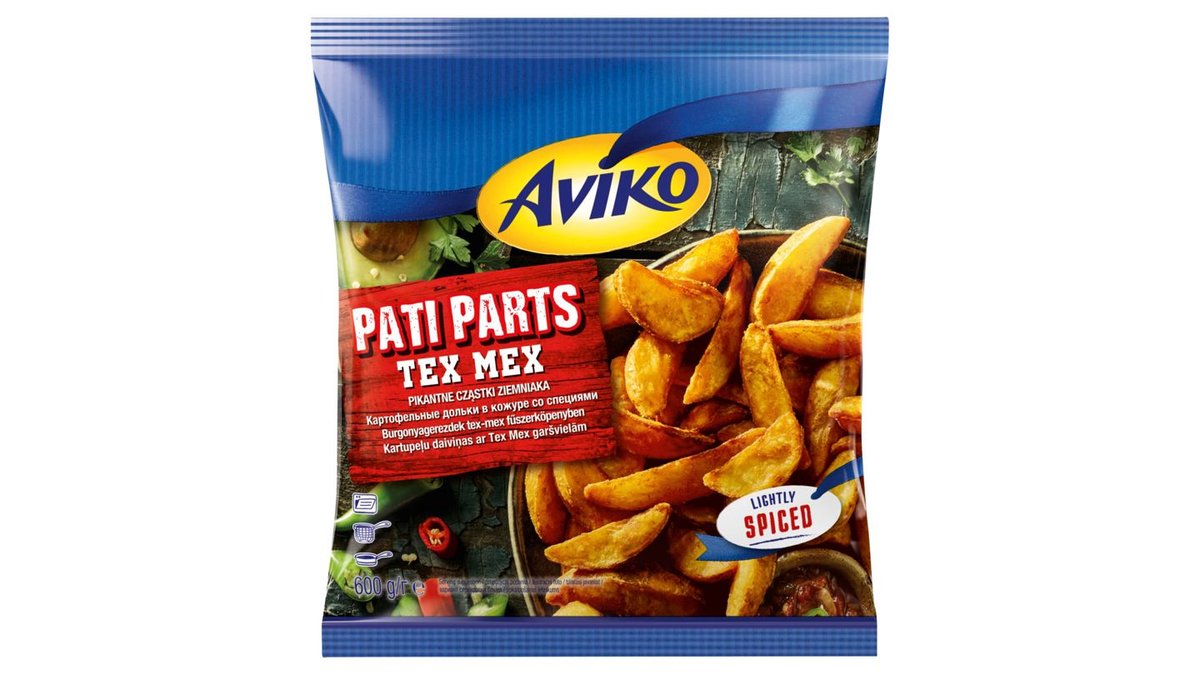Aviko Pati Parts Tex Mex elősütött, gyorsfagyasztott burgonyagerezdek tex-mex fűszerköpenyben 600 g