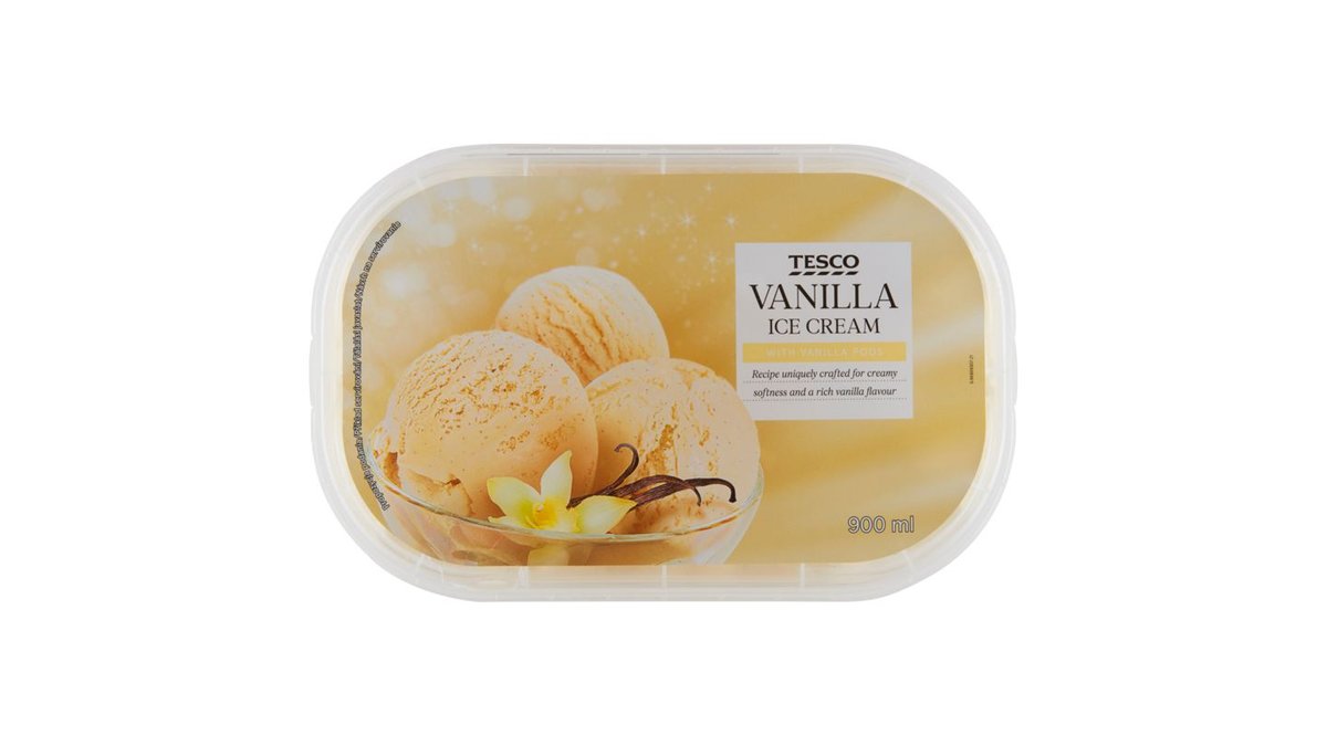Tesco őszibarack jégkrém és bourbon vanília jégkrém málnaszósszal és málnadarabkákkal 900 ml