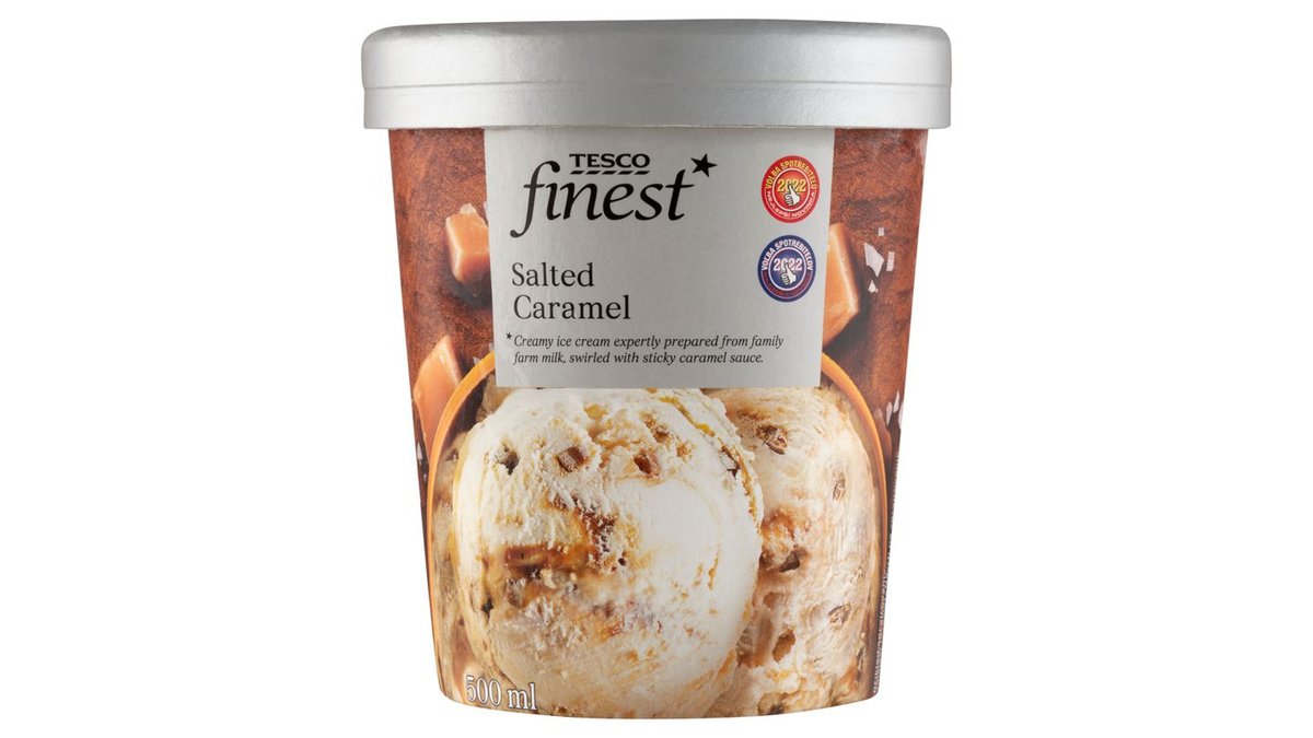 Tesco sós karamell ízű jégkrém sós karamell ízű szósszal és karamelldarabokkal 900 ml