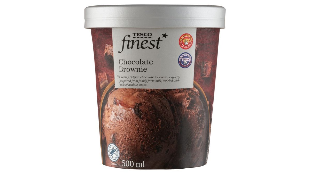 Tesco Finest csokoládés jégkrém brownie sütemény darabokkal és tejcsokoládés szósszal 500 ml