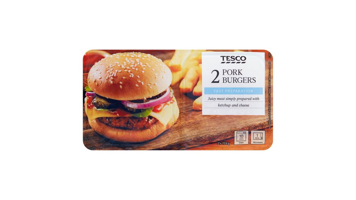 Tesco sertéshúspogácsa szezámmagos hamburgerzsemlében, gouda sajttal és ketchuppal 2 x 159 g