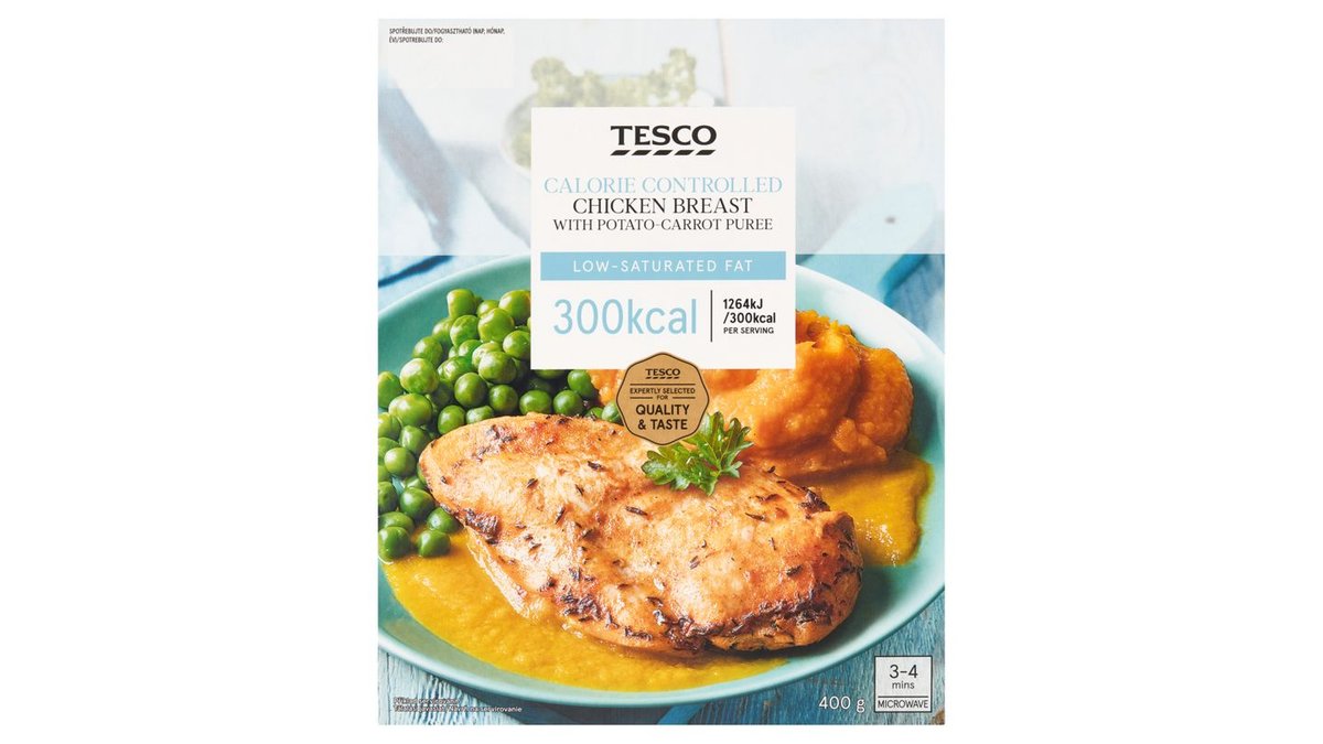 Tesco roston sült csirkemellfilé burgonya- és sárgarépapürével, mártással és zöldborsóval 400 g