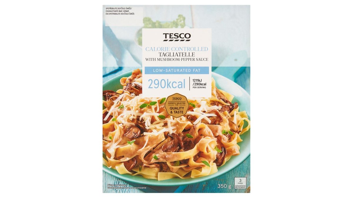 Tesco Tagliatelle főtt tészta gombás mártással, sült gombával és ementáli sajttal 350 g