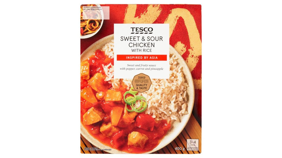 Tesco édes-savanyú szósz főtt rizzsel és csirkemellfilével 400 g