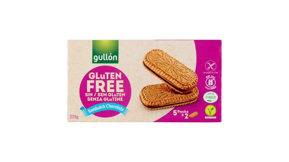 Gullón gluténmentes szendvicskeksz csokoládé ízű krémmel 5 x 45 g (225 g)