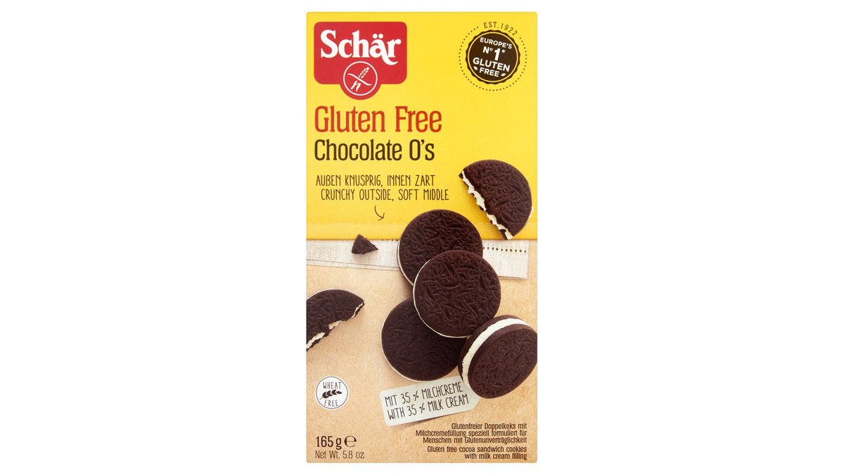 Schär Chocolate O's gluténmentes kakaós keksz tejkrémes töltelékkel 165 g