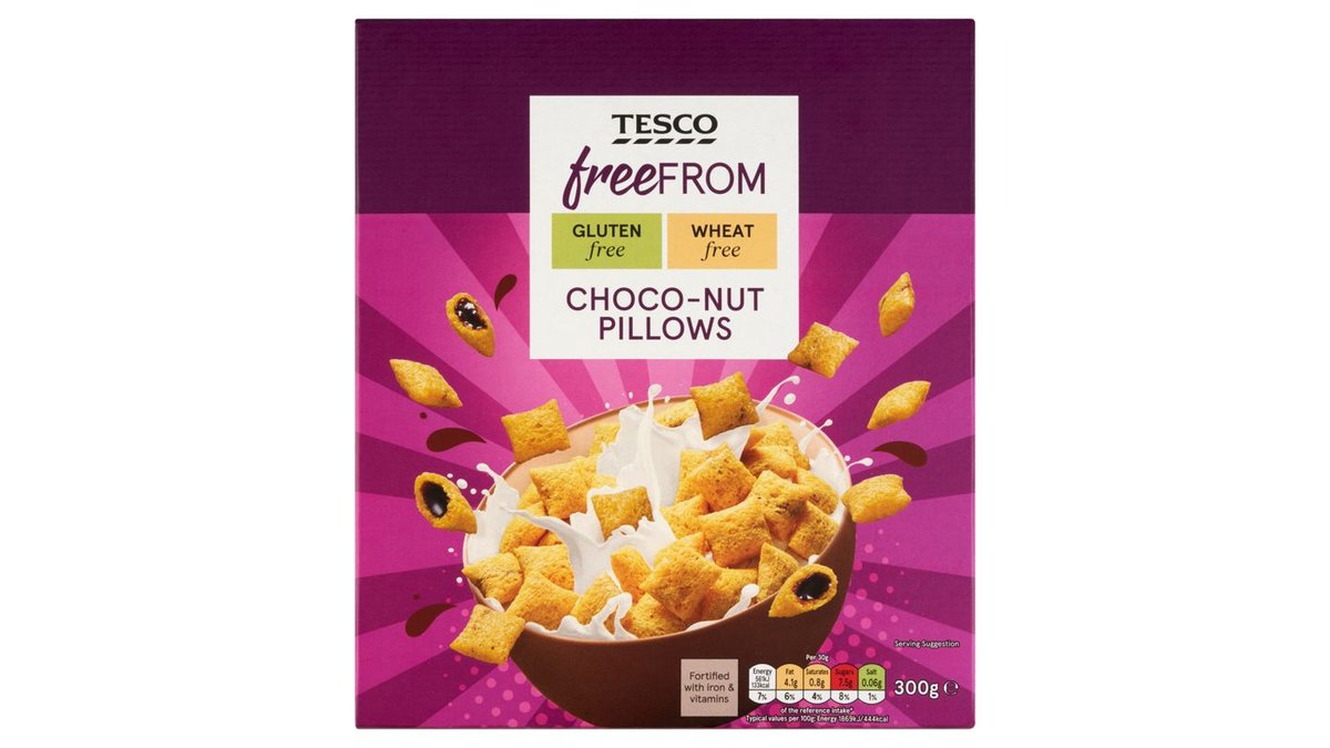 Tesco Free From gluténmentes gabonapárnácskák mogyorós-csokoládés ízű töltelékkel 300 g
