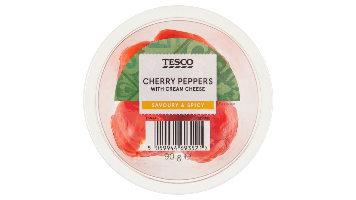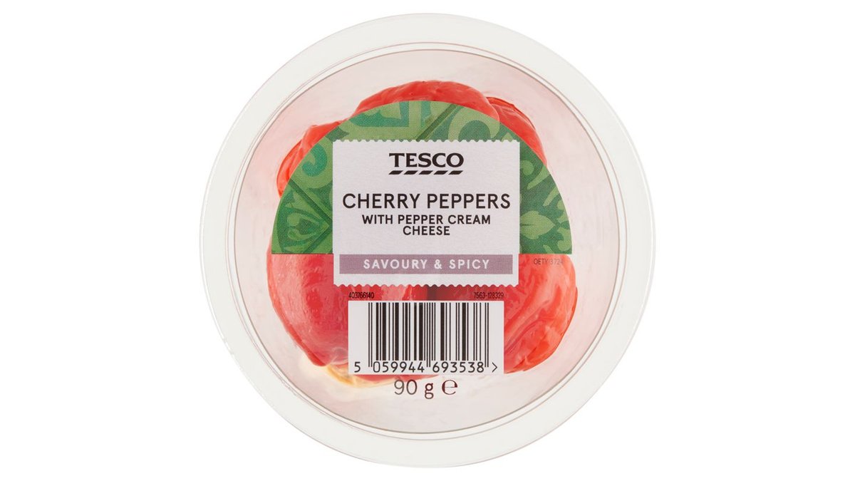 Tesco marinált piros cseresznyepaprika krémsajttal töltve 90 g