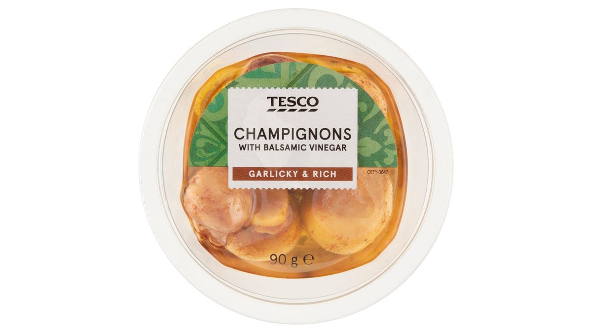 Tesco repceolajban és Aceto Balsamico di Modena balzsamecetben marinált csiperkegomba 90 g